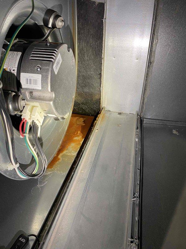 Conducted inspection of furnace installed in 2022 that requires repositioning due to tight clearance constraints. Observed interior components including blower motor assembly and noted rust/corrosion on drain pan. Scheduled return visit to properly adjust furnace position to ensure adequate service access and proper operation.